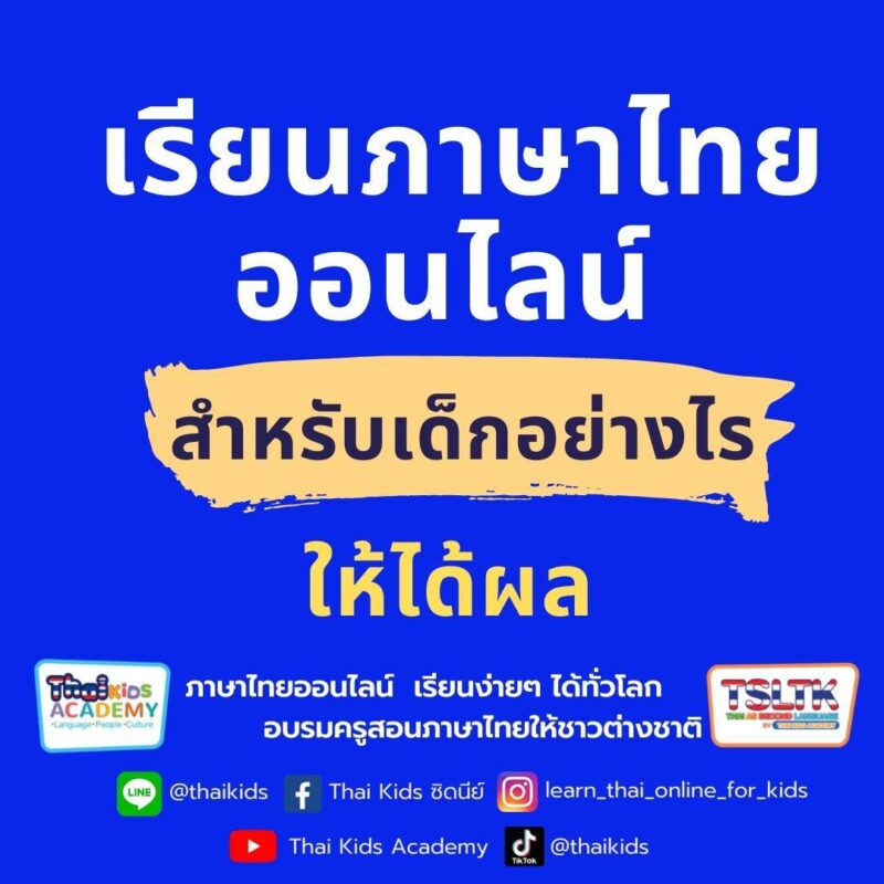 สำหรับ Thai Buddy by TSLTK เองก็เป็นโรงเรียนสอนภาษาไทยออนไลน์ที่จดทะเบียนถูกต้องอยู่ที่ซิดนีย์ ประเทศออสเตรเลีย เราสามารถสอนได้ทั้งเด็กเล็ก เด็กโต ผู้ใหญ่ ทั้งการเรียนฟังพูด แล้วก็อ่านเขียน โดยมีจุดเด่นที่มีความน่าเชื่อถือ ได้ผลลัพธ์ในเวลาอันสั้น และเราใช้หลักสูตรการสอนภาษาไทยให้ชาวต่างชาติที่มีมาตรฐานสูง เพราะได้รับการออกแบบมาเพื่อเด็ก ๆ ที่เกิดต่างประเทศโดยเฉพาะ สำหรับคุณพ่อคุณแม่ท่านไหนที่สนใจคอร์สเรียนภาษาไทยออนไลน์กับเรา สามารถสอบรายละเอียดถามเพิ่มเติมได้ที่ไลน์ @TSLTK