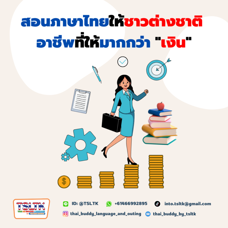 สำหรับใครที่สนใจอาชีพครูสอนภาษาไทยให้ชาวต่างชาติ ครูตุล ฝากมาบอกว่า “แวะมาเจอกันก่อนได้ค่ะ ยินดีต้อนรับมาก ๆ ยังไม่ต้องซื้ออะไรก็ได้ มาฟังฟรี เอาสื่อฟรีไปศึกษาดูก่อน ชอบแล้วค่อยกลับมาซื้อทีหลังก็ได้ สำหรับคนที่ต้องการลงทะเบียนหรือสอบถามเพิ่มเติม ทักมาที่ไลน์ @TSLTK ได้เลยค่ะ ส่วนคนที่อยากรู้จักกับ TSLTK และบริการอื่น ๆ ของเรา สามารถดูรายละเอียดเพิ่มเติมได้ที่ www.tsltk.com ค่ะ”