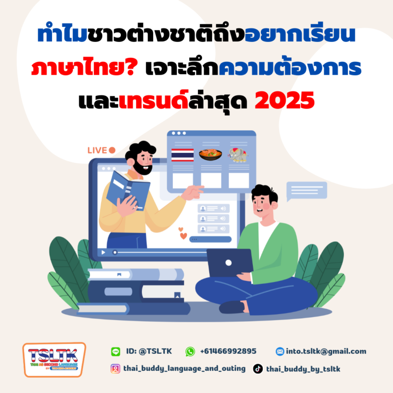 อาชีพครูสอนภาษาไทยให้ชาวต่างชาติกำลังเติบโตอย่างต่อเนื่องในปี 2025 ด้วยความต้องการที่เพิ่มขึ้นทั้งจากฝั่งผู้เรียนและผู้สอน ทำให้สถาบันการศึกษาทั้งภาครัฐและเอกชนหลายแห่งได้เปิดหลักสูตรอบรมการสอนภาษาไทยสำหรับชาวต่างชาติ ซึ่งมีทั้งคอร์สสำหรับคุณครูมือใหม่ที่ต้องการเริ่มต้้นอาชีพนี้ และคอร์สสำหรับคุณครูมือเก๋าให้มา upskill กันในหัวข้อที่เจาะลึกลงไป