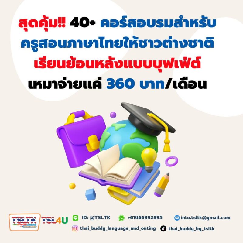 สุดคุ้ม!! 40+ คอร์สอบรมสำหรับครูสอนภาษาไทยให้ชาวต่างชาติ – เรียนย้อนหลังแบบบุฟเฟ่ต์ เหมาจ่ายแค่ 360 บาท/เดือน